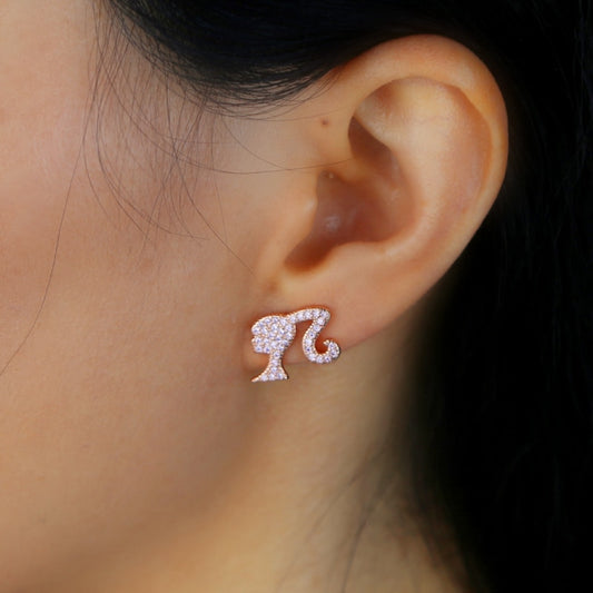 2023 Barbie Girl Inspired CZ Stud Earrings - Iced Out Fashion Earrings, Perfect for Barbie Movie Fans