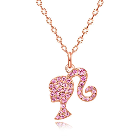 Barbie Inspired Silhouette Head Logo Necklace Pendant Gold Plated with Gorgeous Rhinestones